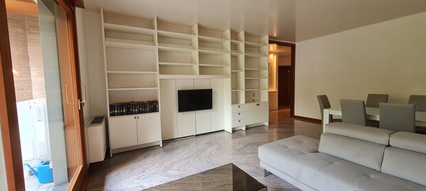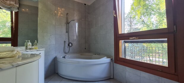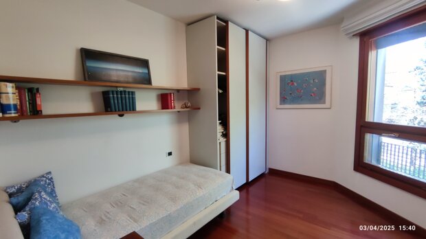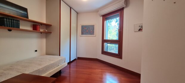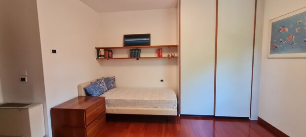 Il mobilio di ottima qualità valorizza questa casa e la rende accogliente, ogni ambiente è attrezzato con armadi capienti e boiserie su misura.